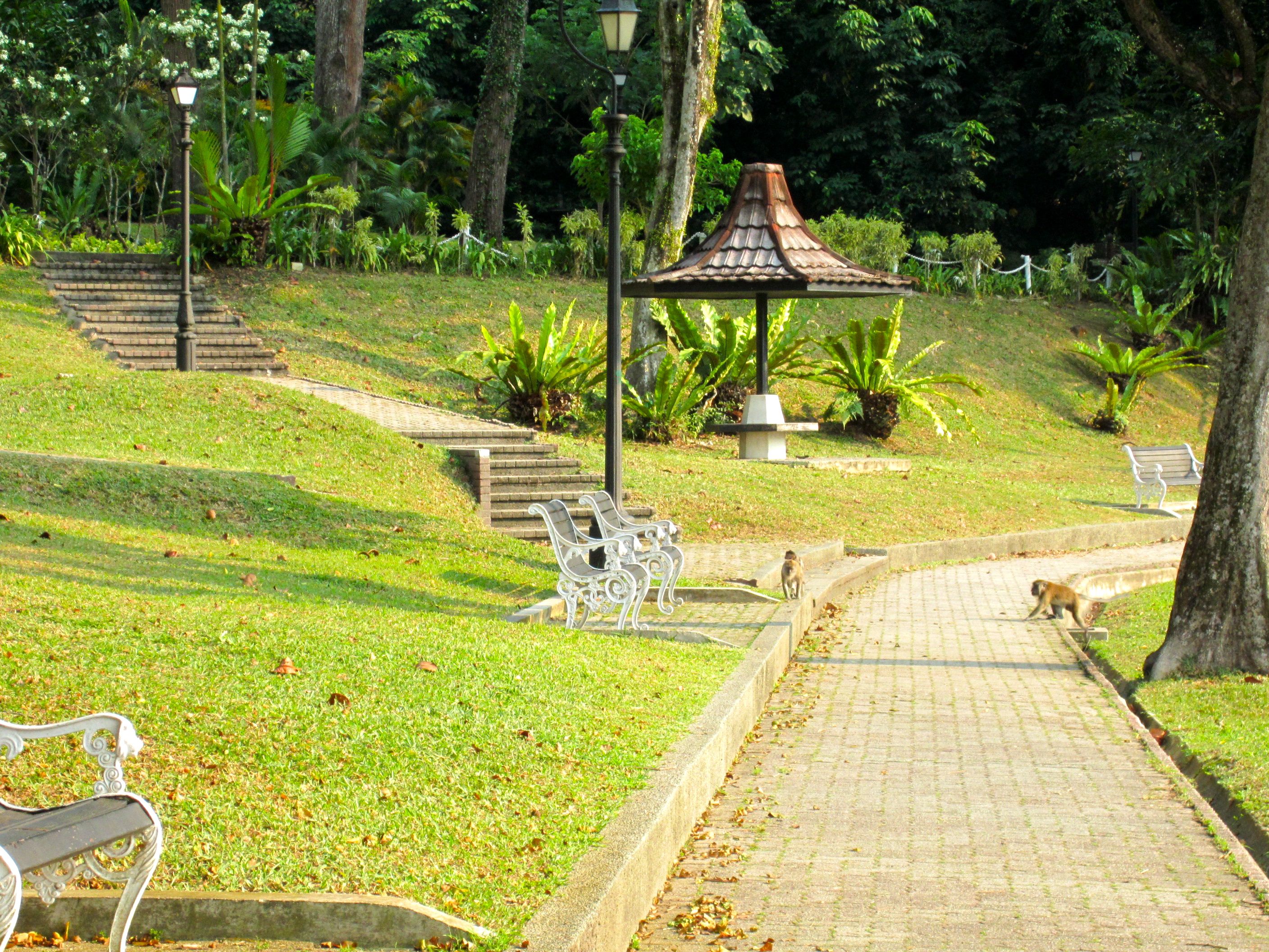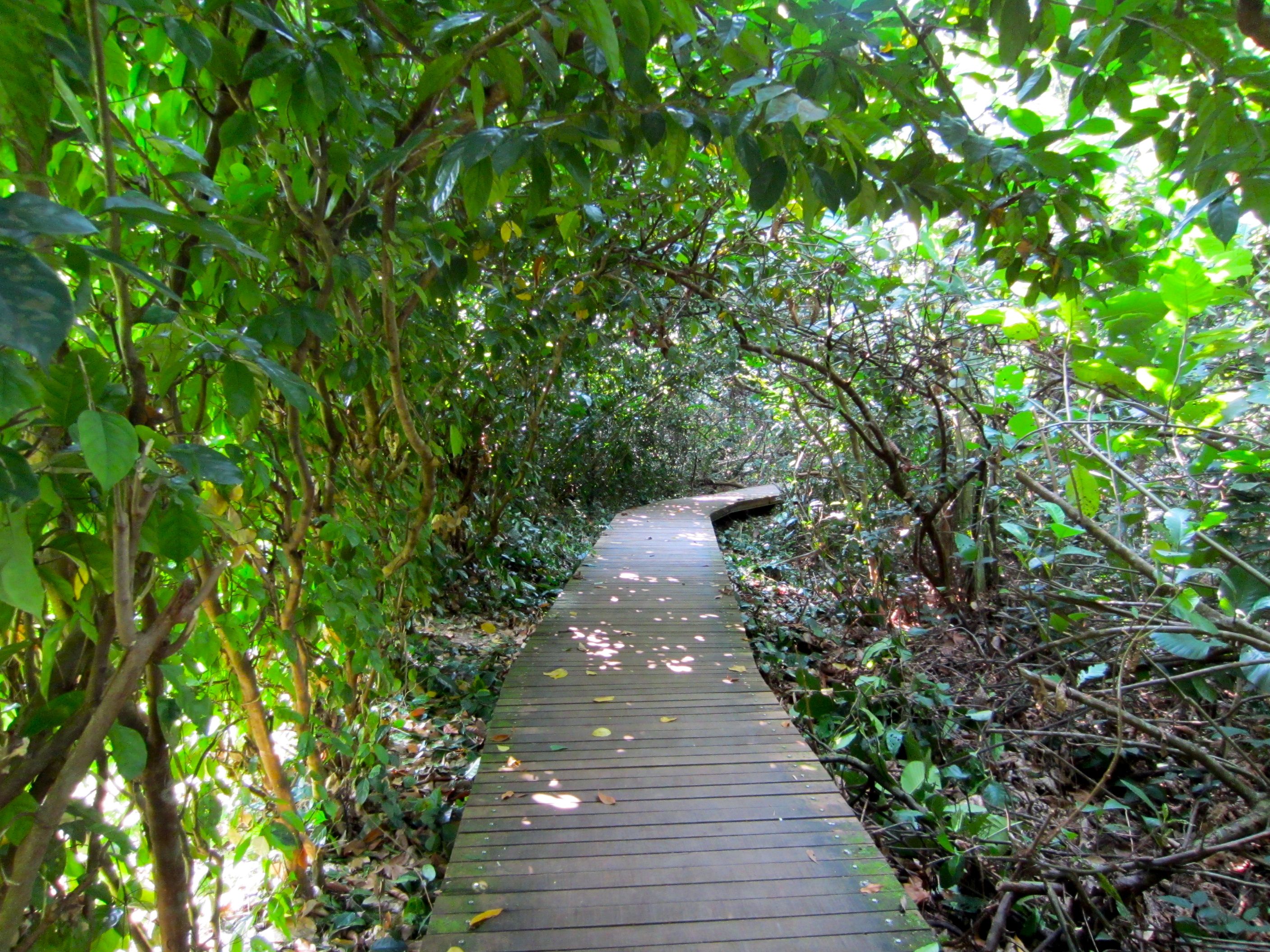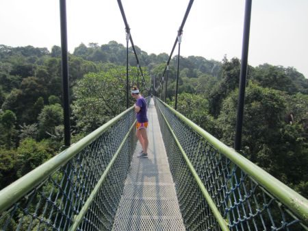 More monkeys later. And from a safer distance. But first, let me tell about this magical place where they live. It’s called the MacRitchie Reservoir. It’s just a short bus trip from the hotel. And it’s absolutely beautiful. If I were a monkey I’d live here too. But I wouldn’t chase after cute ladies with cameras. I’d be a nice little monkey.