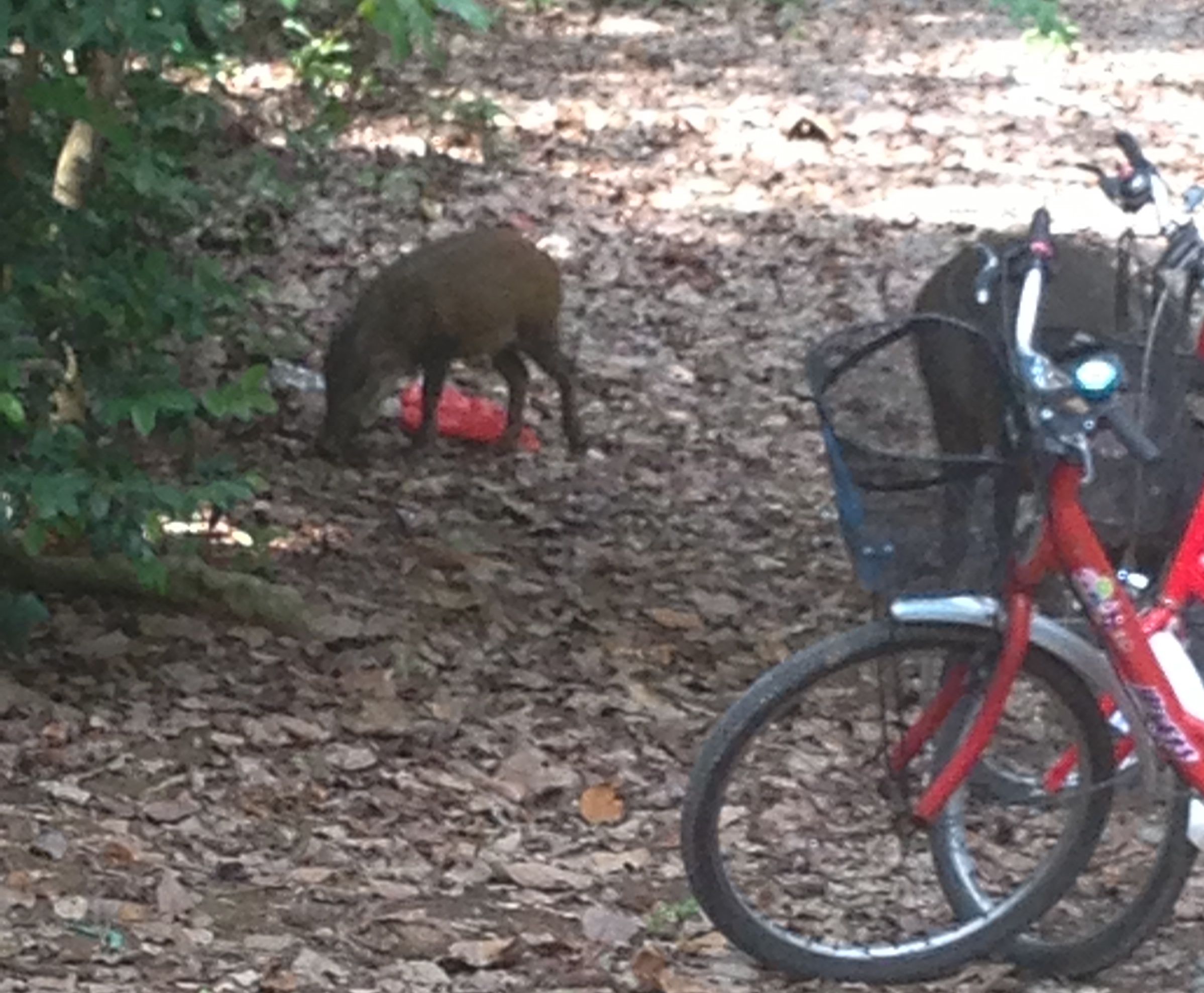 We wheeled around this island for the majority of the day. There’s lots of cool wildlife  (according to the signs we saw), but the only thing I got to see was a wild boar and her baby. I apologize for yet another shit photo. Apparently, getting a good shot is hard when you’re preparing to run for your life.