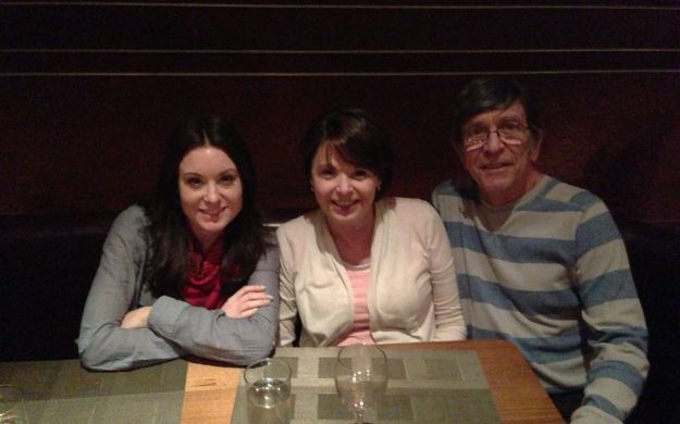 It was really nice to see her, and not just because she brought me a hat, scarf and a warm coat 🙂 We had breakfast in the morning before I headed to work and told her I’d probably be pretty late, and I was. We got off around 9 or 10 and she told me to meet her in the restaurant below the hotel. I should’ve known something was fishy, but i think i was too stressed with work and jet-lagged to smell it. I walked into the restaurant and couldn’t find her. Was looking all around and my dad walked up and said “can I help you to your table?” I could not believe my eyes. I gave him a hug and saw mom around the corner. Then I gave her a hug and started crying in the middle of the restaurant, in front of tables filled with people staring at me. Damn it. My pride was hurt again. But i really didn’t care, my heart was happy. Here’s a picture of me and my surprise visitors #2 & #3, My incredible sweet and thoughtful parents.