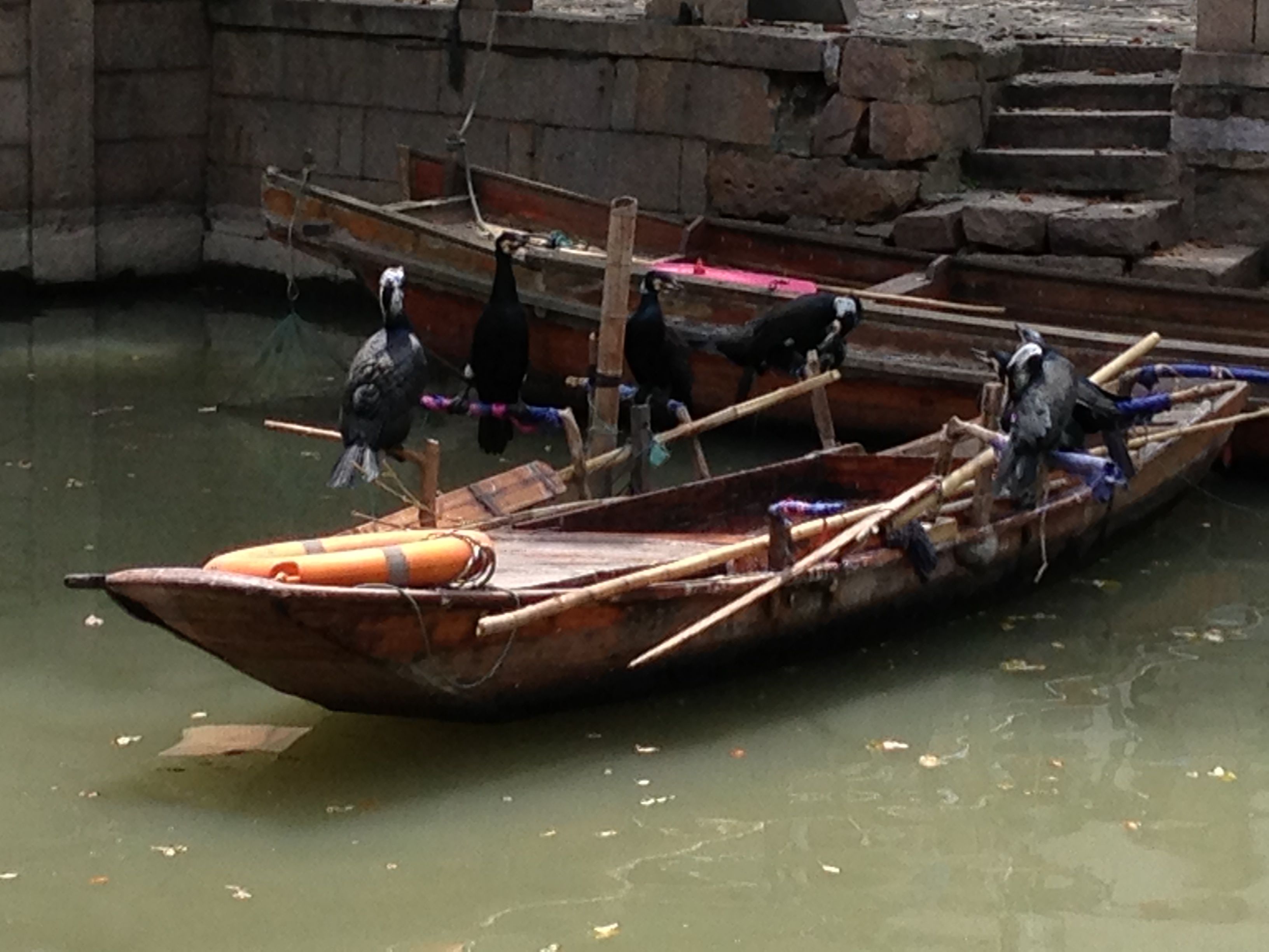 These are Cormorants, a type of bird that is trained to dive down into the water and catch a fish and bring it back up for humans to eat. The fishermen tie a cord around the bird’s necks to keep them from swallowing the fish. Can you imagine running into Lou Malnatis, grabbing a slice of pizza with your mouth, and then having to give it to someone else? Once the sweet combination of pepperoni, mozzarella and tomatoes hits my tongue, I’m not letting go. So I understood when one bird didn’t want hand over his catch. The bird’s master, however, wasn’t as empathetic and we watched in horror as he received a beating. Not cool, Chinese fisherman.