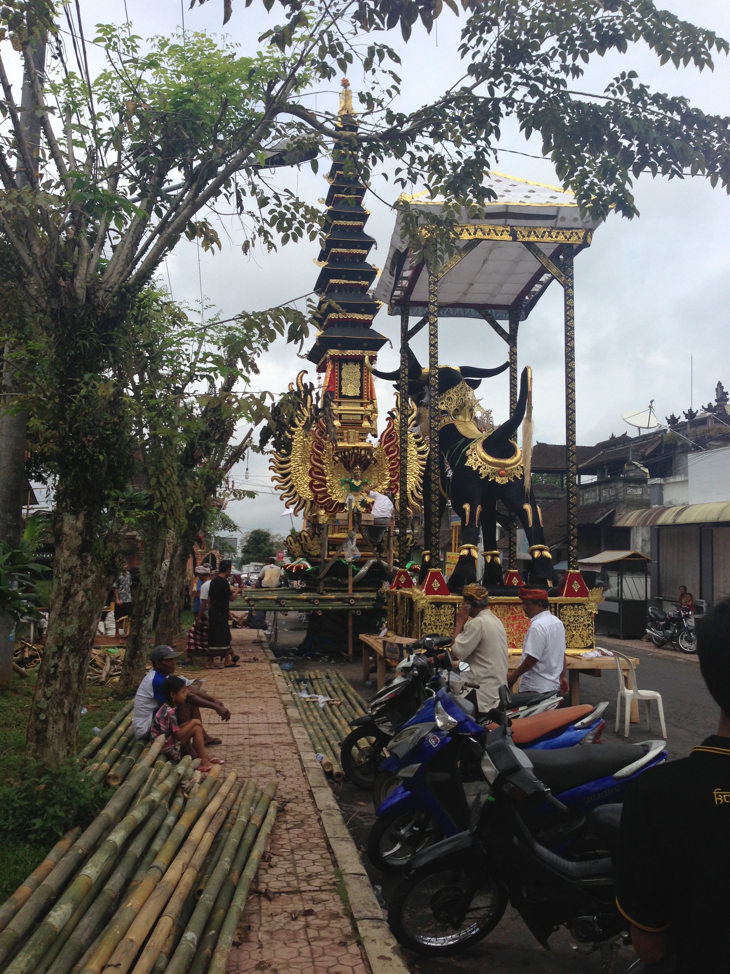 While being driven around Ubud, we ran into this.. which is a tower built to honor someone who recently died. They put the body inside and burn it as part of the ritual. They also burn other things they want to deceased to enjoy in the afterlife. When I die, please burn me a pizza and a bottle of wine.